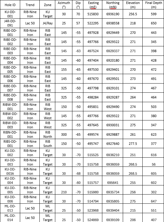 Table 1: 2025 Angilak Exploration Program Drill Collar Information