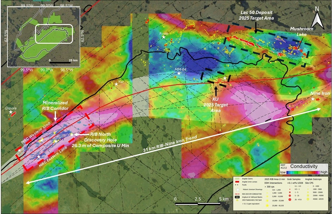 - Multiple regional discoveries along the 31km RIB-Nine Iron trend host hallmarks of large, high-grade, unconformity-style uranium deposits, comparable to world-class Athabasca Basin analogues
